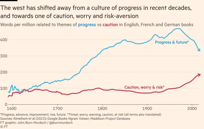 很棒的文章,谢谢!我认为“安全崇拜”的兴起从根本上改变了人类的思维。虽然带来了许多好处,但工作场所健康与安全和人力资源部门的巩固,加上(或是作为结果)诉讼的增加,意味着我们将人身安全置于一切之上。人类对风险的胃口,对人类进步是必要的,已经被一个规避风险的集体极大地压制了。在澳大利亚,我们在 Covid 期间清楚地看到了这一点——强制戴口罩,不同阶段禁止离家超过 5 公里。集体的身体安全是一切……人们在社会和文化上枯萎了。此外,推动更大的政府、福利的兴起以及政府的角色是照顾人民的想法自 1950 年代以来变得越来越流行。这是早在 Covid 之前我们就已经踏上的轨迹,但这肯定加速了它。