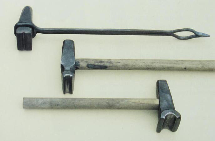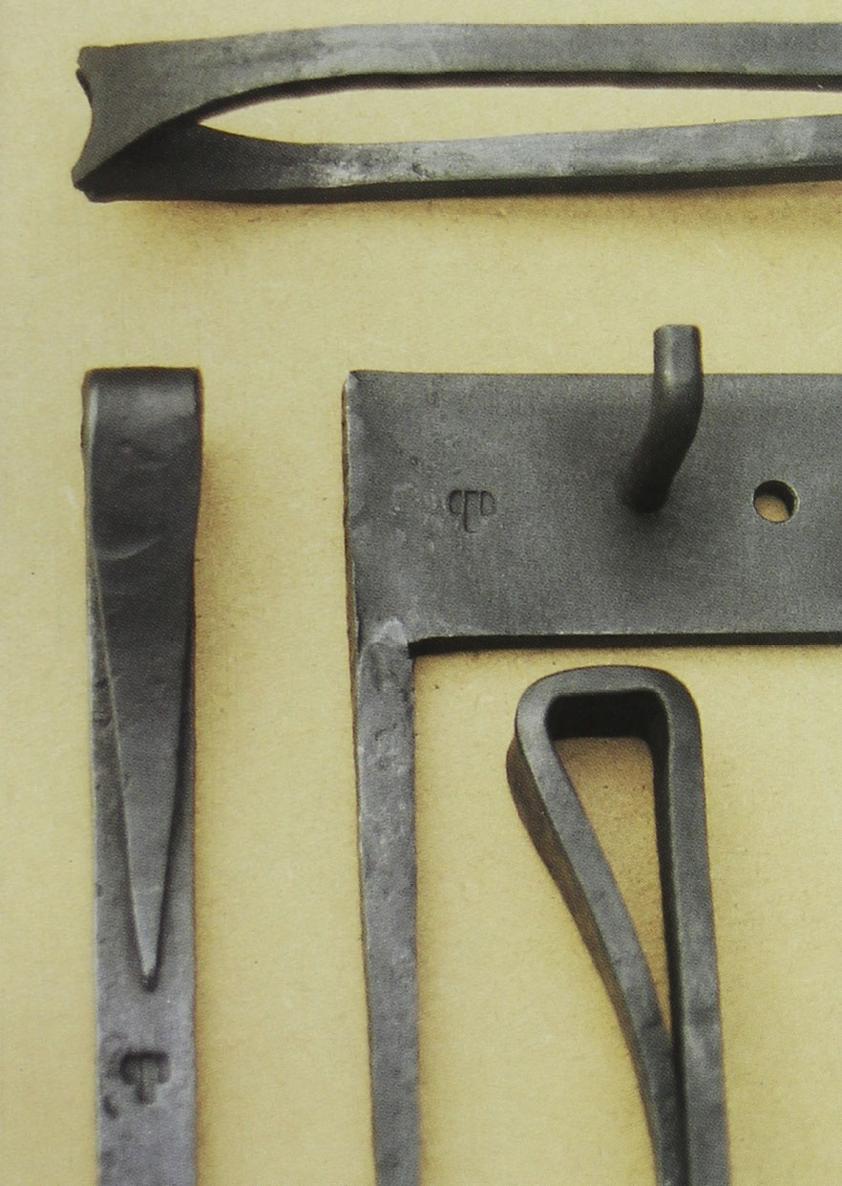 在我的书架上有一本为1980年大英博物馆”维京人”展览出版的书,其中包括一张照片,展示了一组留在十世纪挪威武器铁匠墓中的工具。那些钳子、锤子和凿子与我今天在工作坊使用的工具几乎完全相同,时隔整整一千年。