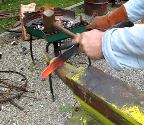 当您注意到金属在锤打时开始折叠时,将刀刃放在铁砧上,将边缘锤回平整。需要注意的一个重要方面是,您不应该在刀尖上花费太多时间,特别是如果它是弯曲的或非常薄的。在最后的锻造阶段再处理它。