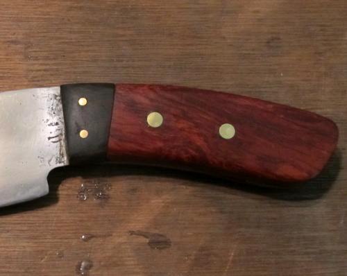 胶水凝固后,可以用丙酮清理。用锉刀将黄铜销钉锉平。锉平刀柄使其表面光滑并抛光——可以涂几层桐油(Tung oil)。