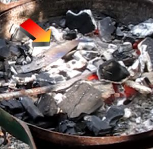 如上图所示,应将刀背放在更靠近火源的位置,刀刃远离火源。刀背会先加热,然后慢慢将热量传导到刀刃。