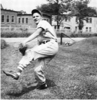 准备向塞勒姆街对面的友好”邻居”投出”曲线球”,1950年。