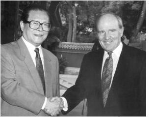 90年代初会见中国国家主席江泽民。照片由GE提供