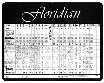 1995年桑卡蒂角会员嘉宾锦标赛上,与搭档、儿子约翰在一起。