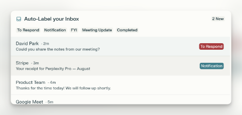 使用邮件助手,你可以让Perplexity处理你的收件箱——分类邮件、起草回复和跟进——这样每次收到提醒时你就不会失去专注。