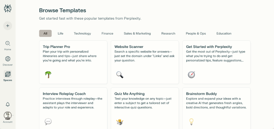 访问我们的模板库,获取更多 Perplexity Space 模板